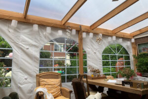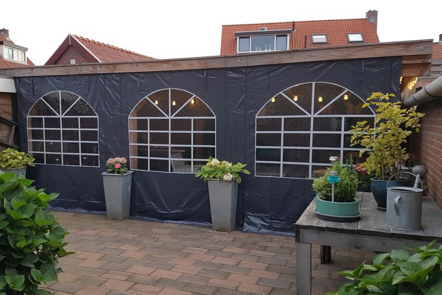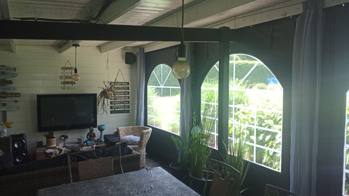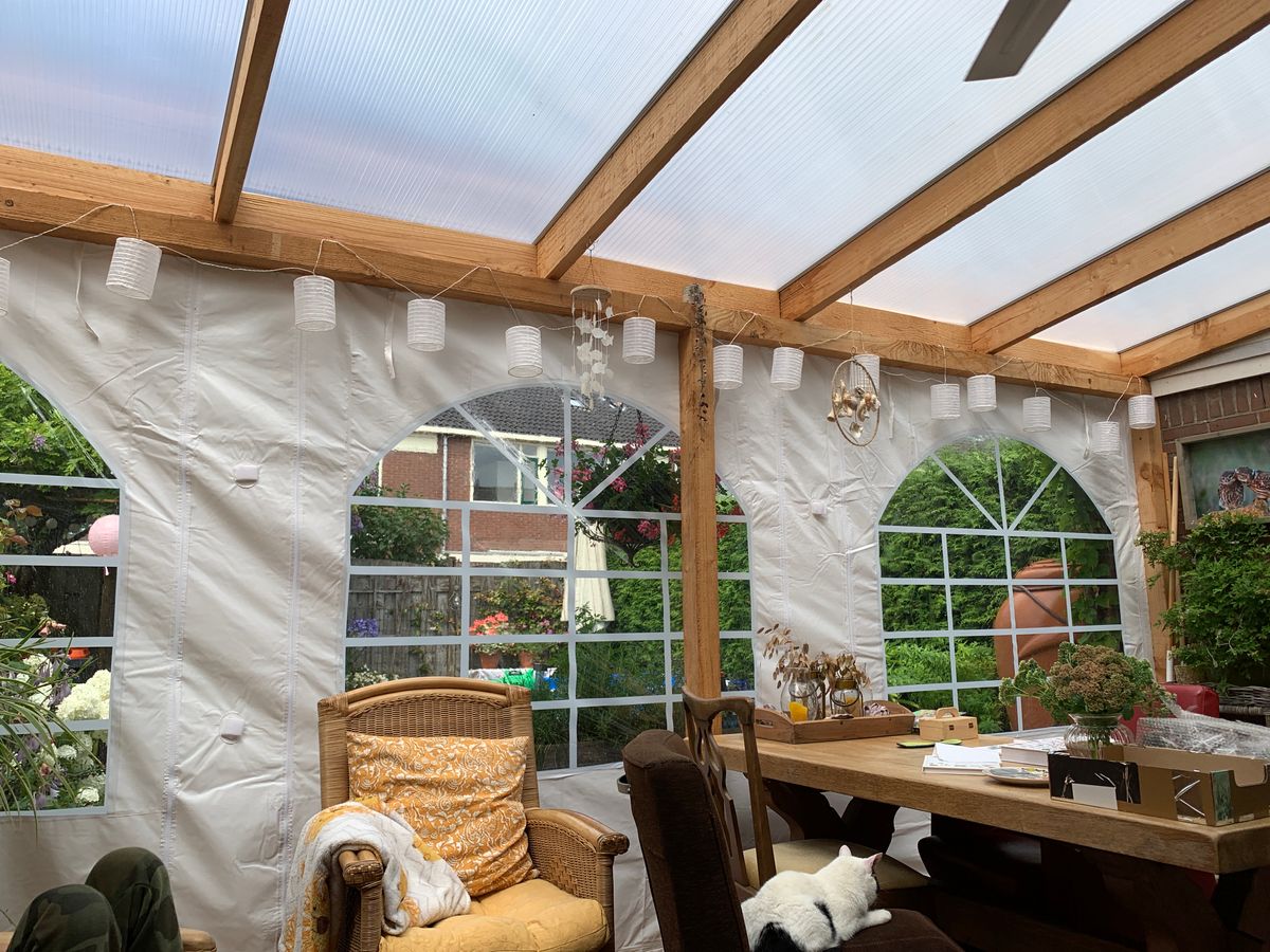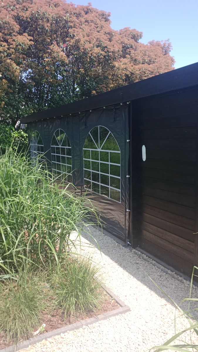 De zijwand heeft 3 ramen. Naast elk raam beschikt de zijwand over sterke ritsen waardoor je het raam kunt oprollen en bovenaan kunt vastzetten. Handig in lente en zomer.