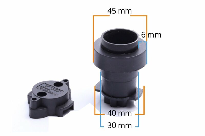 - Breedte hals fitting: 30mm