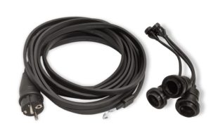 De prikkabel is spatwaterdicht gekeurd doormiddel van rubberen ringen om de fittingen en kan het gehele jaar buiten hangen. Gemaakt van neopreen.