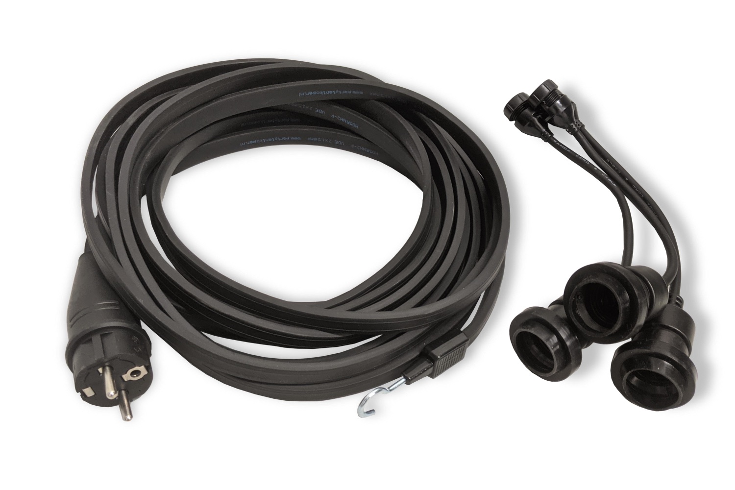 De kabel kan zowel binnen als buiten gebruikt worden. De prikkabel is volledig waterdicht (niet te gebruiken onder water natuurlijk).