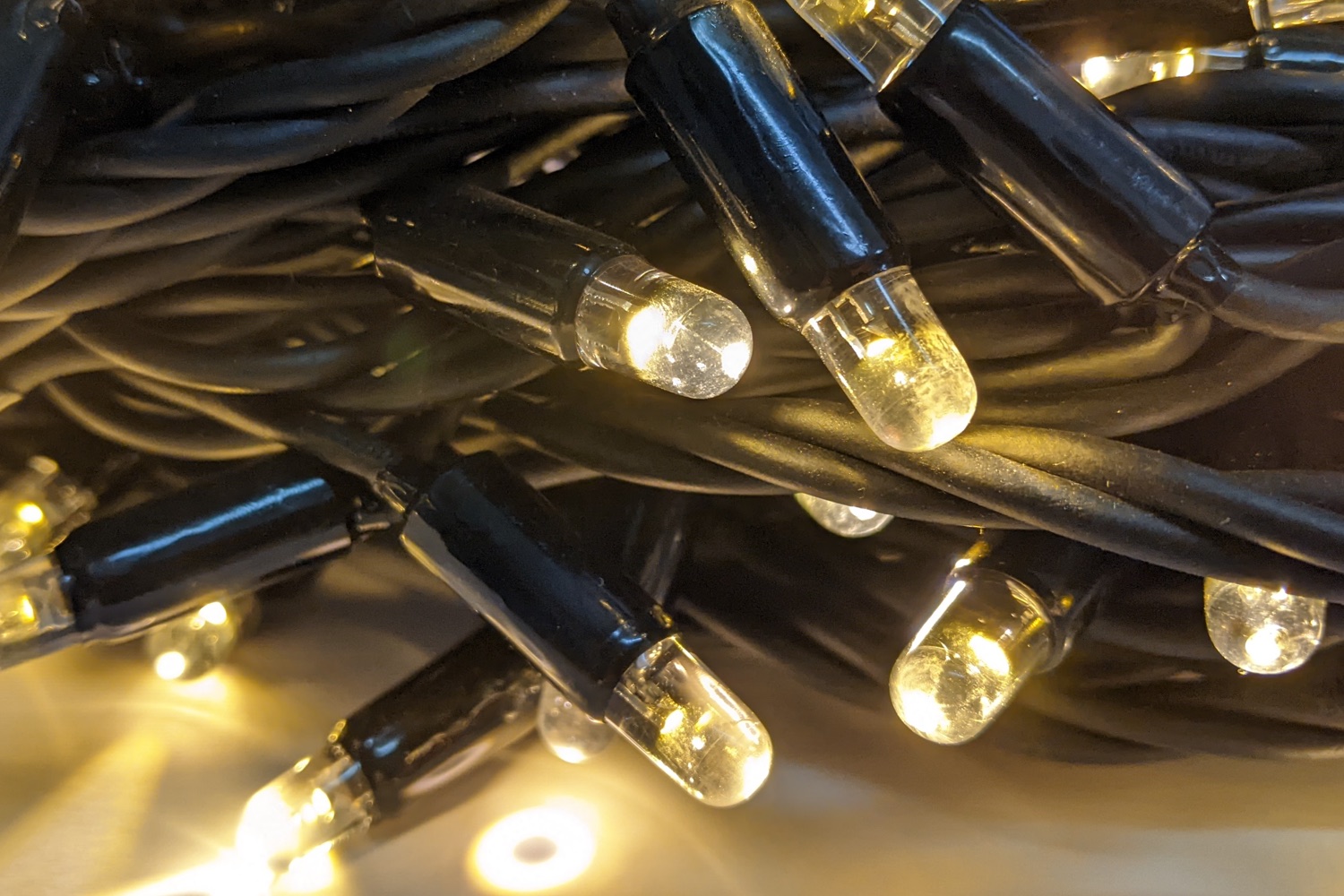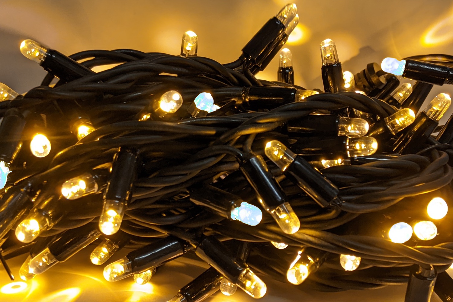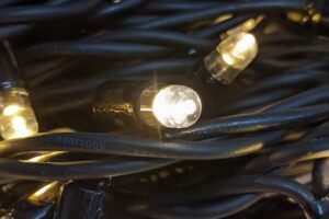 De kerstverlichting heeft warm witte led lampjes met af en toe een blauw fonkelend ledje. Totaal 84 warm wit en 16 fonkelende in gelijkmatige verdeling. De onderlinge afstand tussen de ledjes is10cm. De lampjes zijn waterdicht verbonden aan de hoofdkabel. De rubberen kabel kan tegen een stootje en kan in elke weersomstandigheid gebruikt worden. Doordat de kabel op de uiteinden is voorzien van koppelstukken kun je deze steeds doorkoppelen met nieuwe stukken kerstverlichting. Ook zijn er splitters beschikbaar waarbij je kunt uitsplitsen naar nog meer kabels. Het advies is totaal niet meer dan 100m aan een stekker te verbinden. Standaard beschikt elke kabel over een stop in het koppelstuk zodat het ook per stuk gebruikt kan worden.