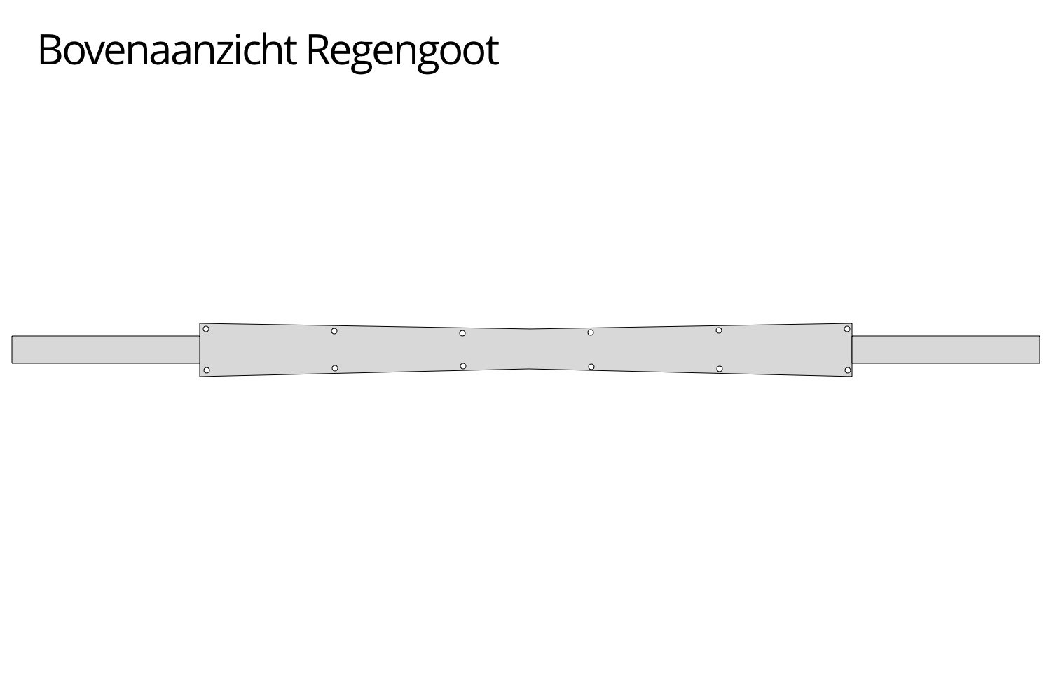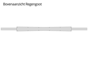 De goot komt onder de rand van beide tenten te hangen aan het frame. Doordat de goot naar het midden toe smaller wordt loopt het water automatisch naar beide uiteinden toe.