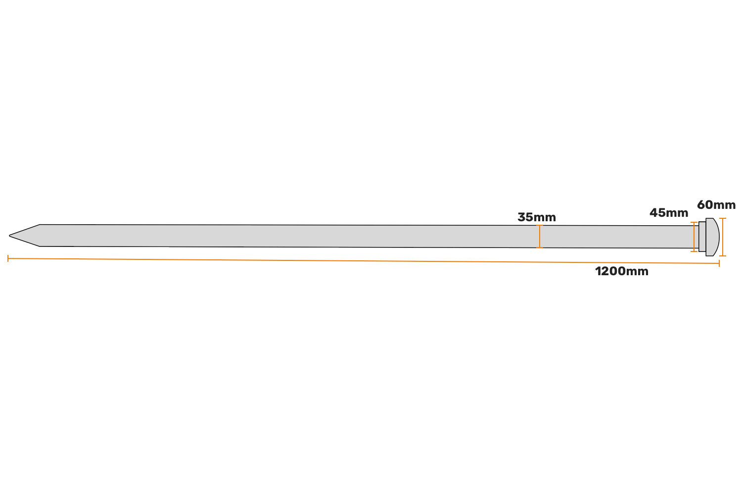 Lengte: De haring heeft een lengte van 120 centimeter, wat betekent dat hij diep in de grond kan worden gedreven om maximale stabiliteit te bieden.