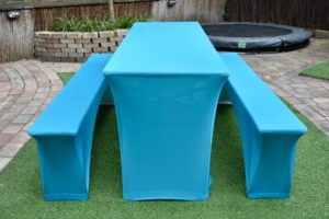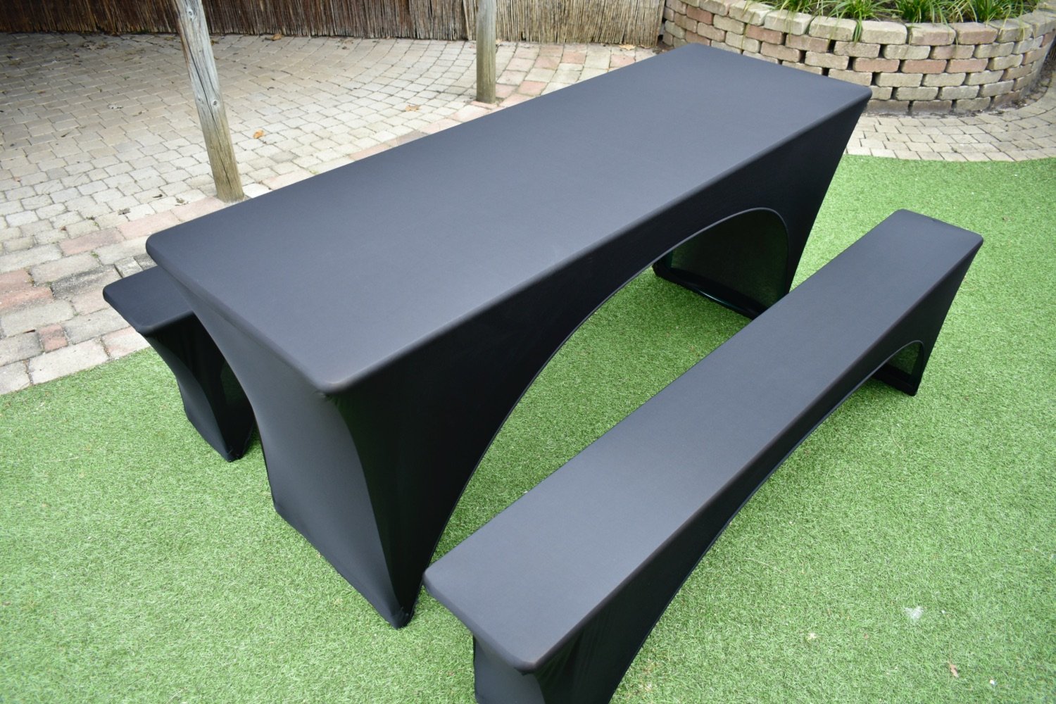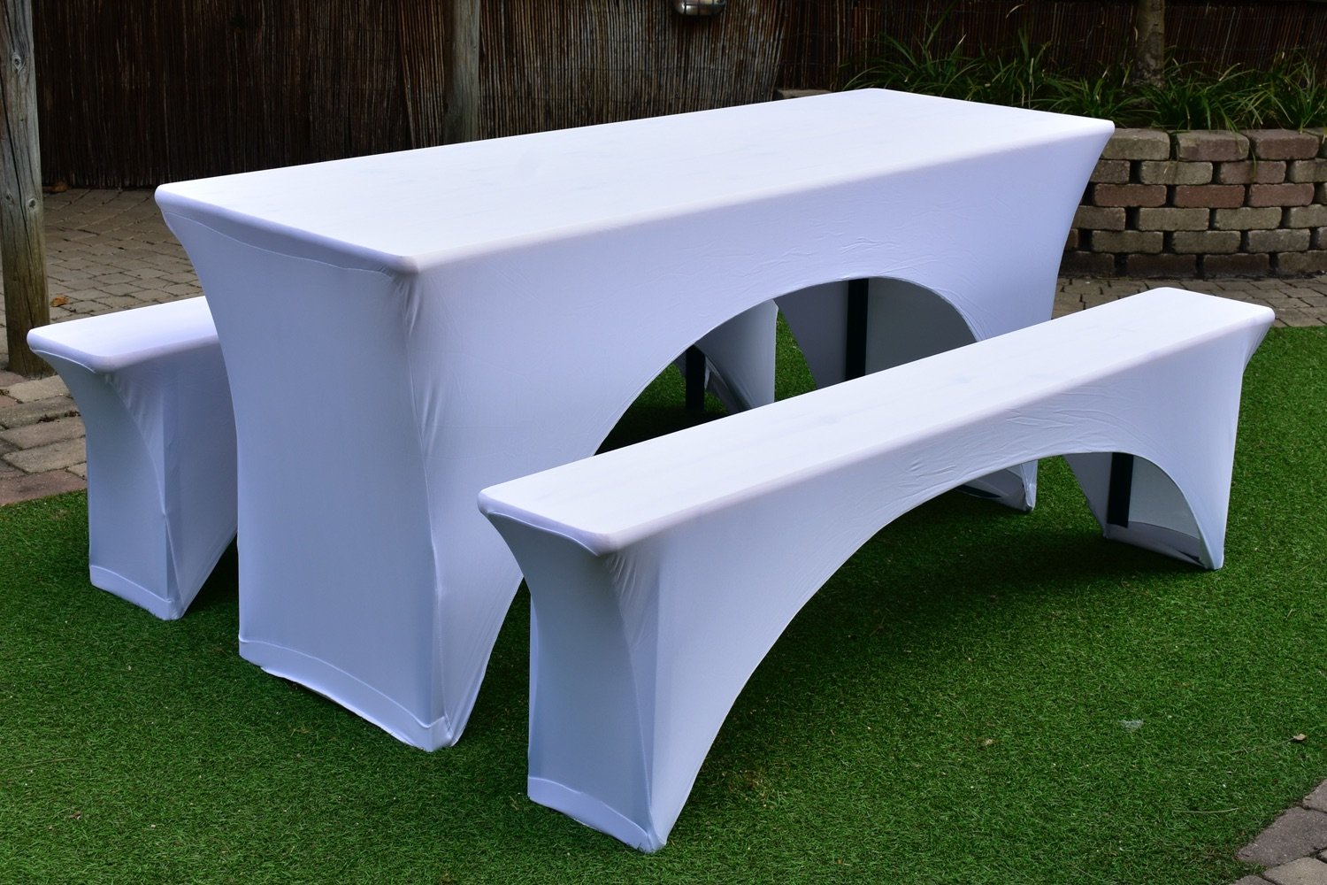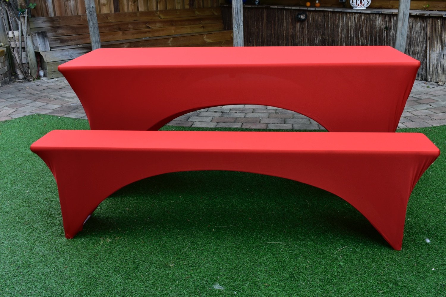 Als de afmetingen van je biertafel iets afwijkt is dat geen probleem. Doordat de stof elastisch is past het gemakkelijk op biertafels en banken met geringe afwijkende afmetingen.