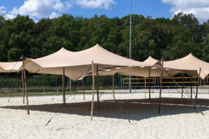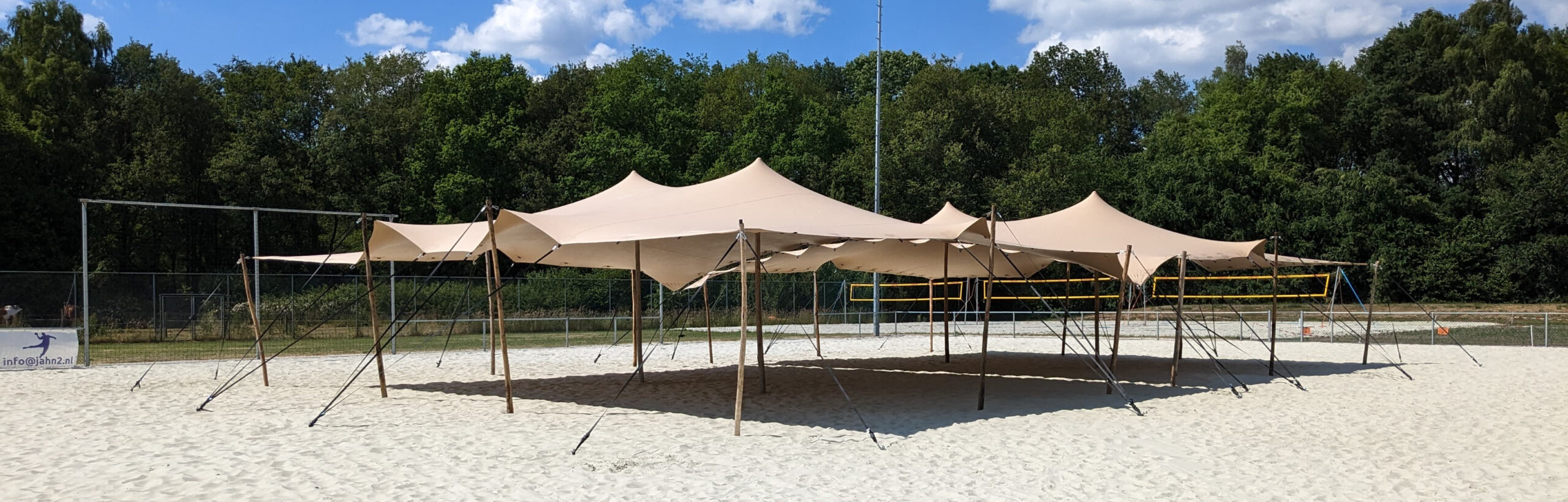 Op deze manier kun je de stretchtent goed op spanning zetten.
