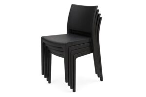 De stapelstoel Lisbon is een moderne en praktische stoel voor uiteenlopende toepassingen. Dankzij het strakke ontwerp en de neutrale zwarte kleur past deze stoel moeiteloos in vrijwel iedere omgeving, van evenementen en vergaderruimtes tot kantines, terrassen en horeca.
