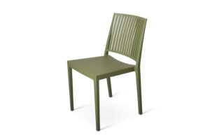Vervaardigd uit duurzaam polypropyleen, biedt comfort en stijl voor horecagelegenheden, met zijn weerbestendigheid, trendy kleur en stapelbare ontwerp, perfect geschikt voor drukbezochte buitenruimtes.