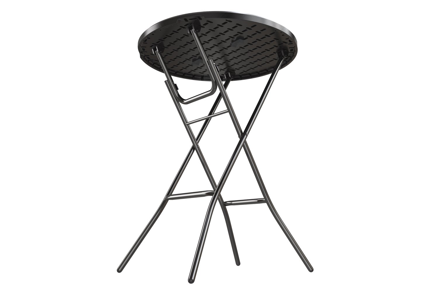 De tafel is eenvoudig inklapbaar en daardoor handig op te bergen en te vervoeren. Voor grotere aantallen is er een speciale trolley beschikbaar waar 12 statafels tegelijk op passen.