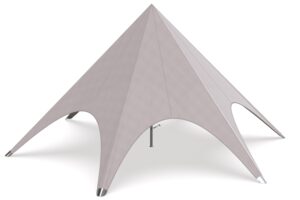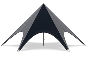 Let op: De stertent, met zijn imposante hoogte en lichtgewicht doek, is de ideale keuze voor evenementen, dankzij het opvallende ontwerp en de functionaliteit. Echter, vanwege deze specifieke eigenschappen, adviseren wij dat de tent niet voor langere perioden wordt geïnstalleerd en het is raadzaam om voorzichtig te zijn met het gebruik in omstandigheden met sterke wind. Het advies is om deze stertent niet op te stellen bij een windkracht groter dan 5 beaufort.