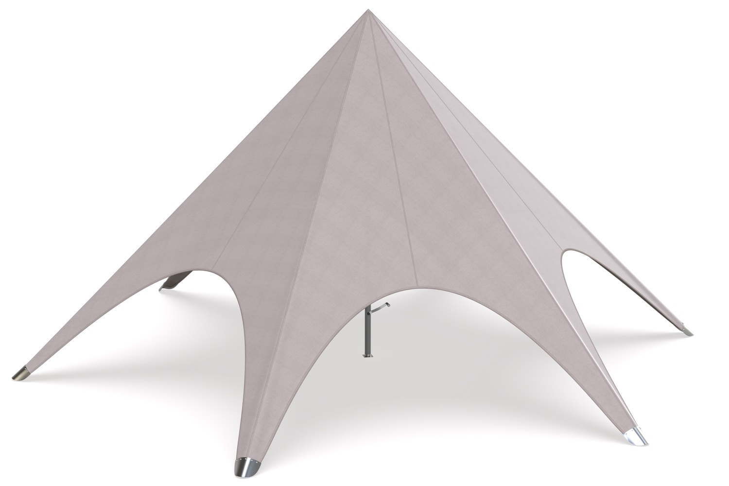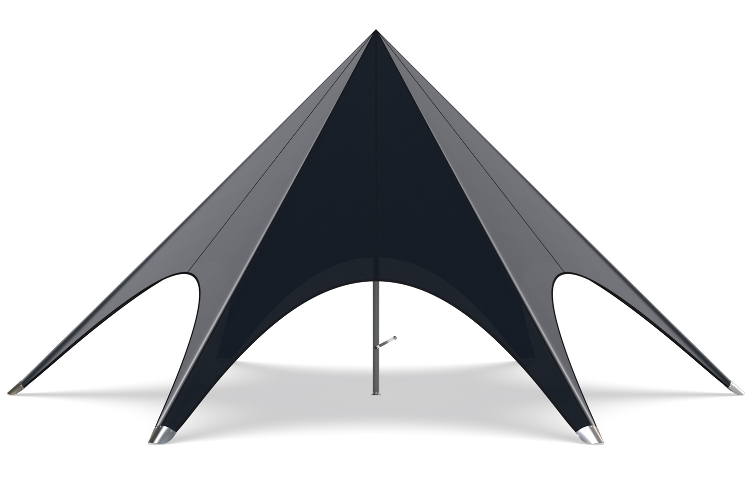 De kern van onze stertent wordt gevormd door een dikwandige aluminium paal met een diameter van 63mm. Deze robuuste constructie zorgt ervoor dat de stertent stevig op zijn plaats staat. De combinatie van deze zware paal met het veerkrachtige doek maakt onze tent niet alleen een betrouwbare keuze voor elk evenement, maar ook een opvallend middelpunt dat elegantie en professionaliteit uitstraalt.