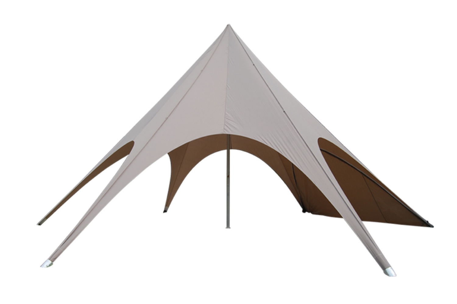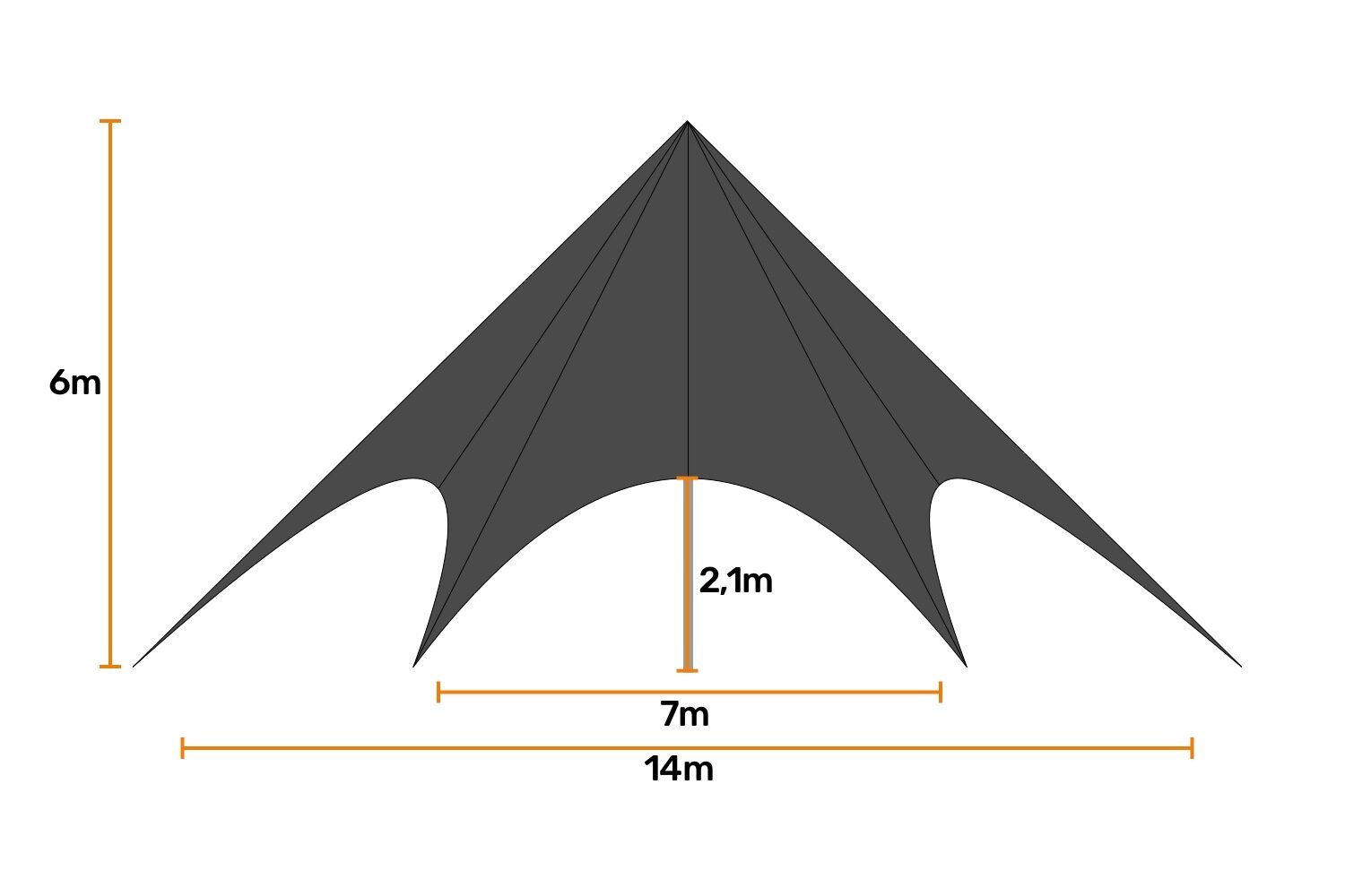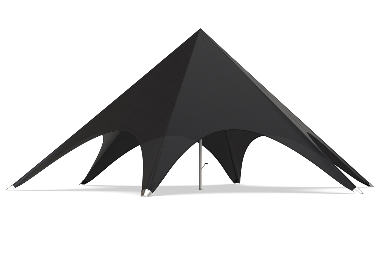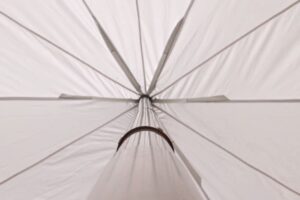 De kern van onze stertent wordt gevormd door een dikwandige aluminium paal met een diameter van 75mm. Deze robuuste constructie zorgt ervoor dat de stertent stevig op zijn plaats staat. De combinatie van deze zware paal met het veerkrachtige doek maakt onze tent niet alleen een betrouwbare keuze voor elk evenement, maar ook een opvallend middelpunt dat elegantie en professionaliteit uitstraalt.
