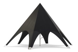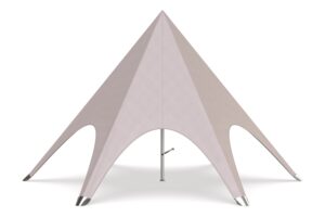 De kern van onze stertent wordt gevormd door een dikwandige aluminium paal met een diameter van 63mm. Deze robuuste constructie zorgt ervoor dat de stertent stevig op zijn plaats staat. De combinatie van deze zware paal met het veerkrachtige doek maakt onze tent niet alleen een betrouwbare keuze voor elk evenement, maar ook een opvallend middelpunt dat elegantie en professionaliteit uitstraalt.