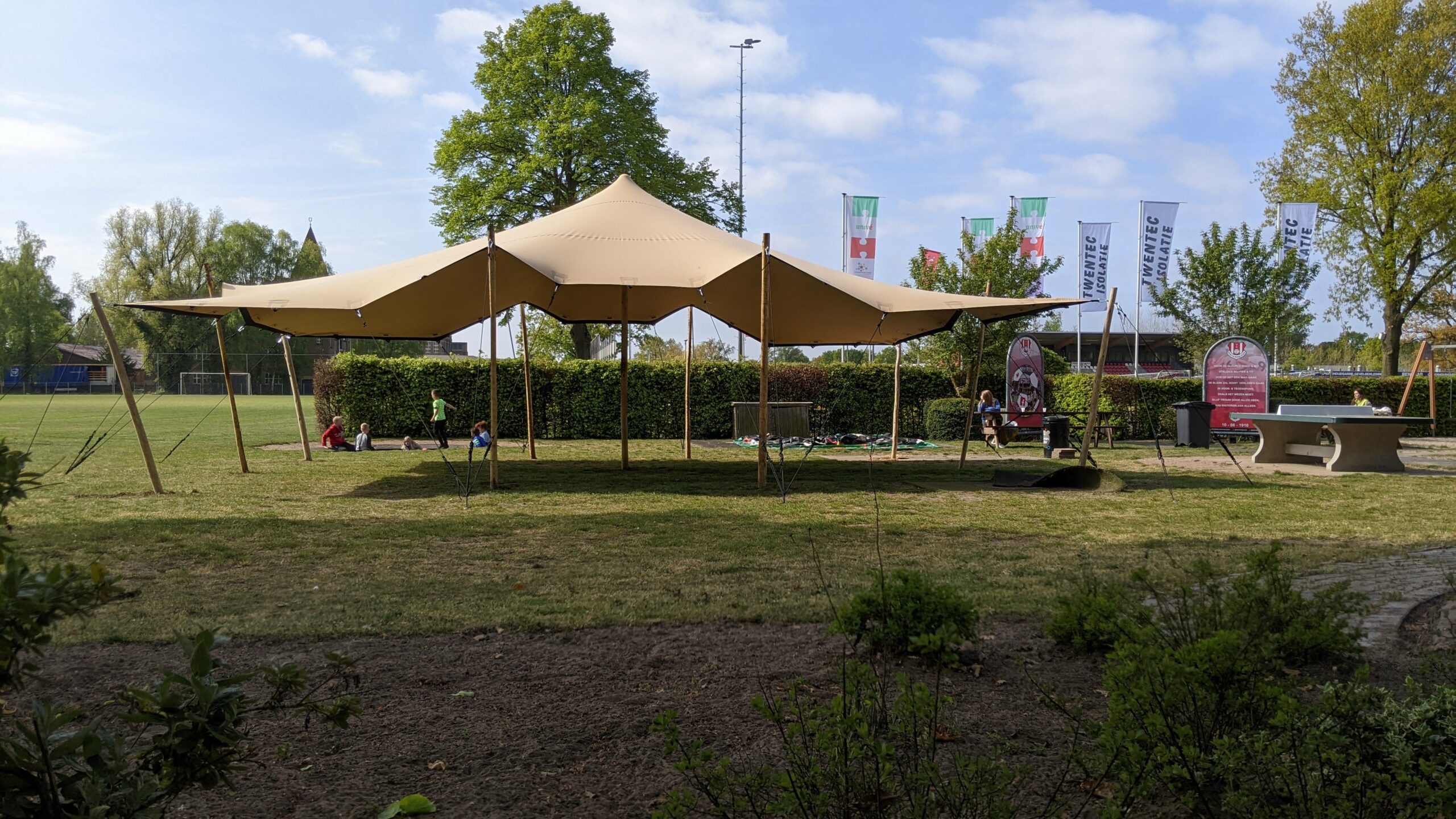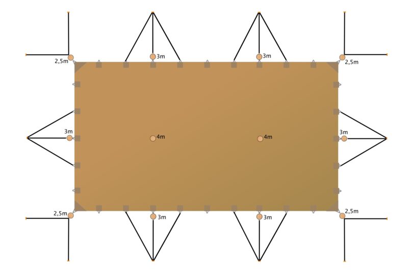 De stretchtent beschikt over meerdere lengtes palen.