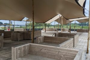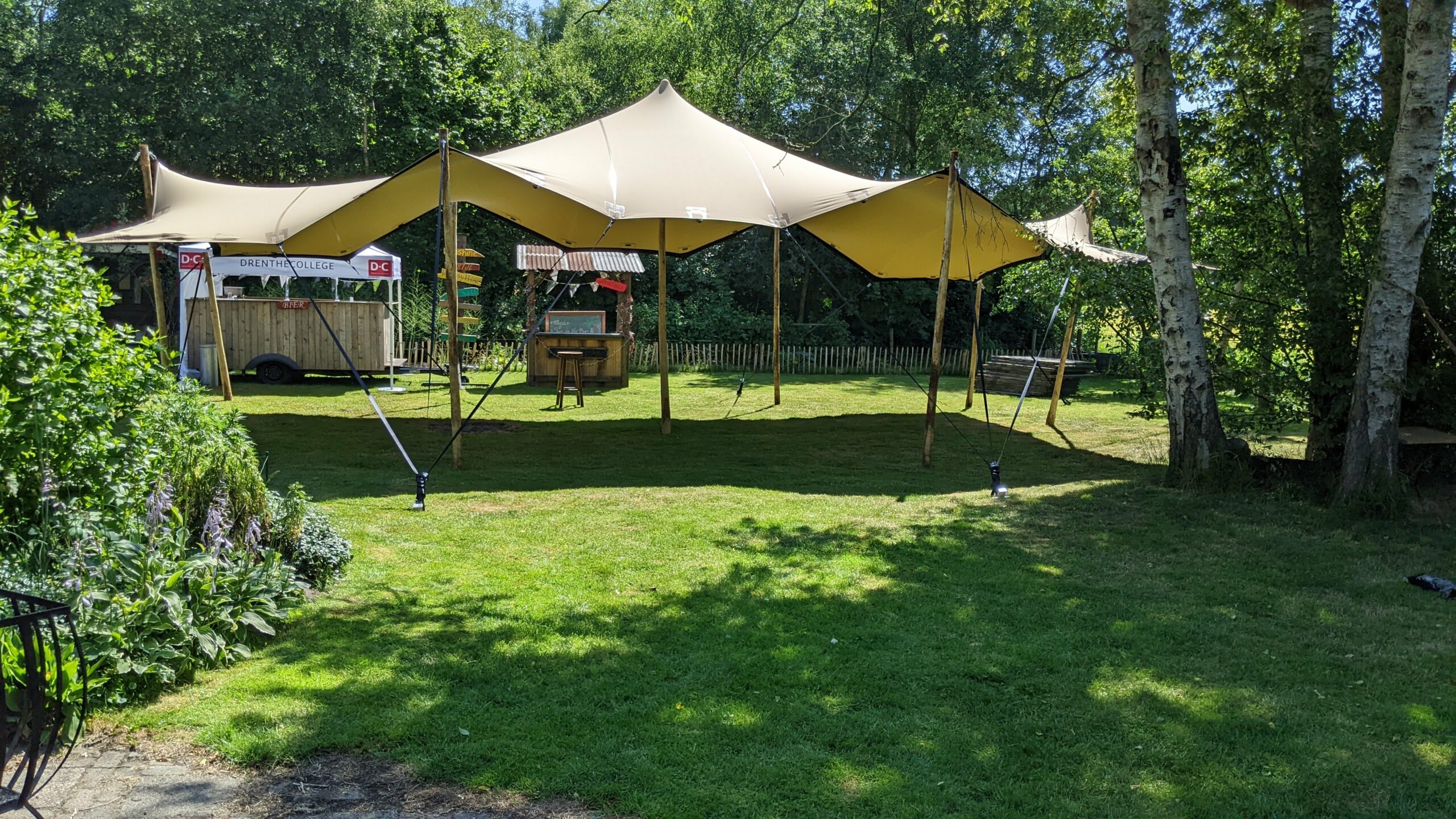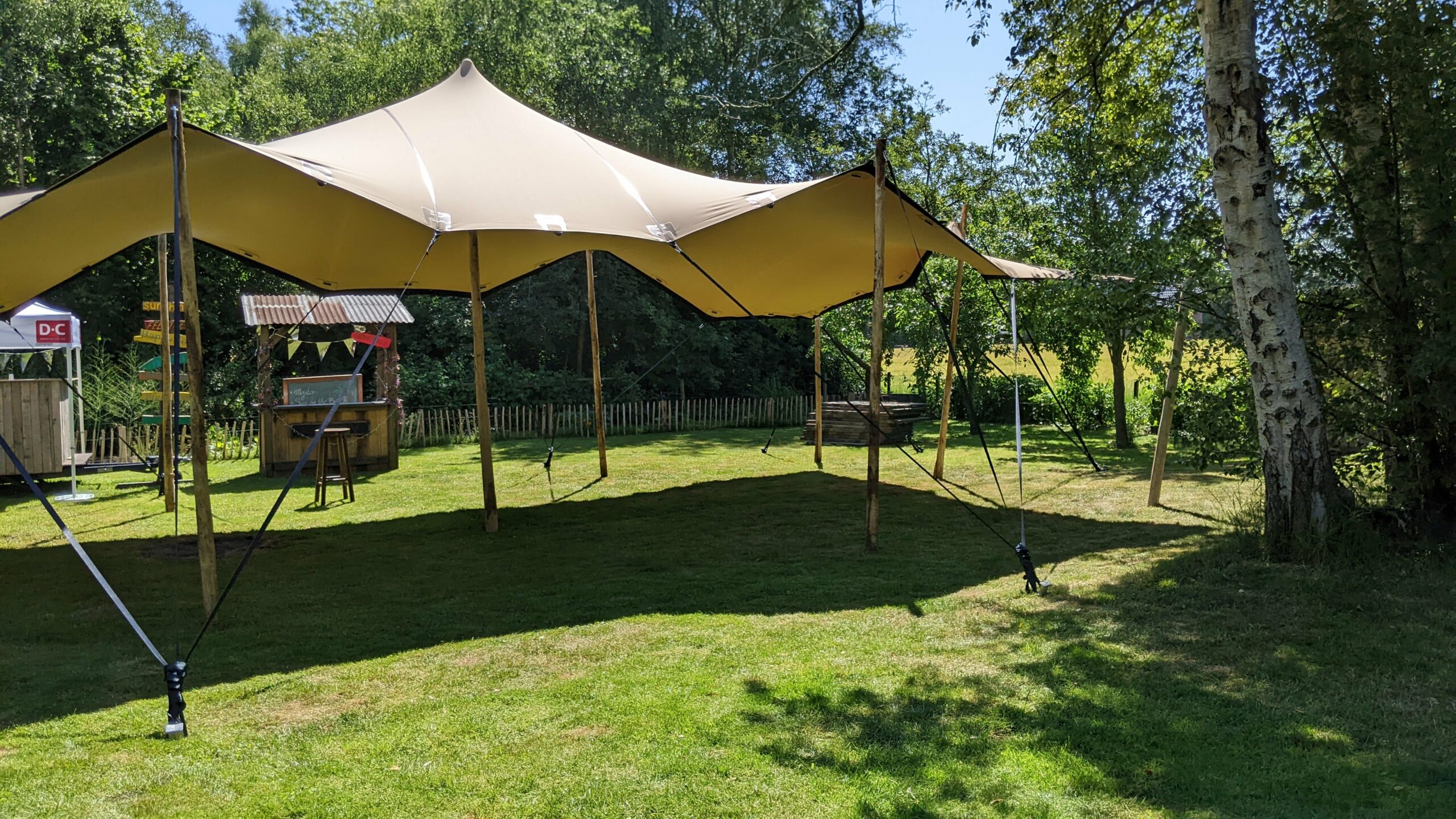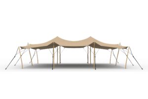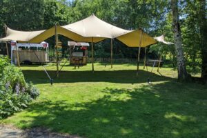 De stretchtent wordt compleet geleverd inclusief alle benodigdheden om deze op te zetten.