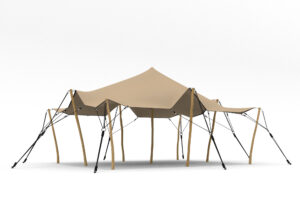 De geschiedenis van de stretchtent voert ons terug naar de mysterieuze Afrikaanse woestijnen, waar bedoeïenen een revolutionaire tent ontwikkelden om zelfs de meest barre omstandigheden te trotseren. Deze inspirerende oorsprong heeft geleid tot de moderne stretchtent met zijn kenmerkende zandkleurige zeilen en robuuste houten palen.