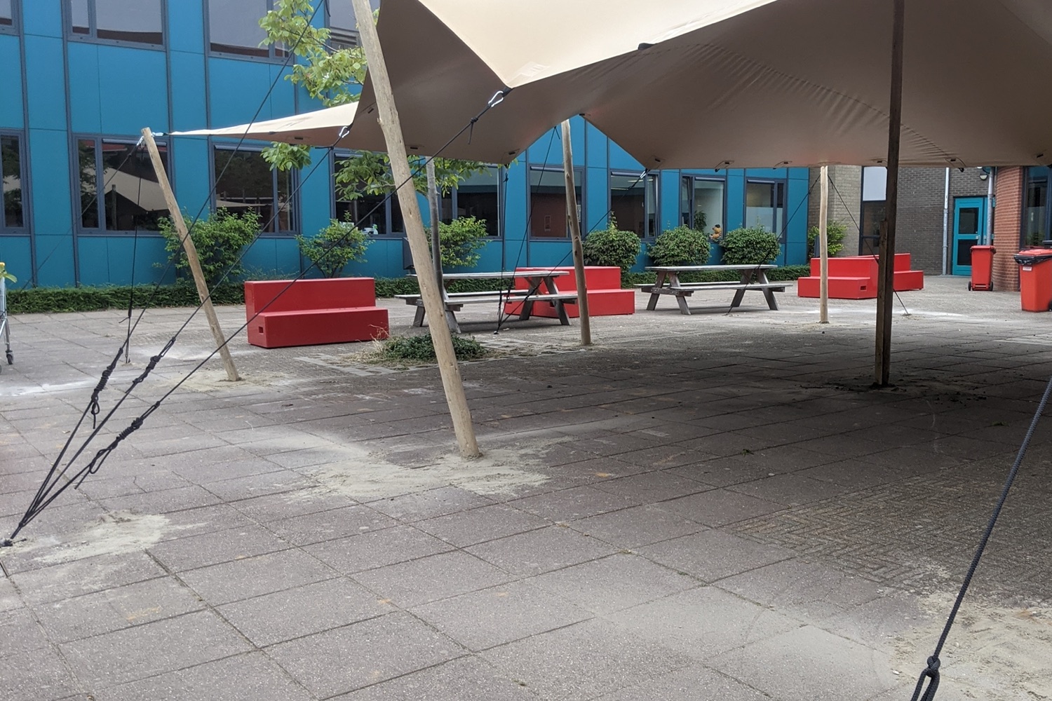 In het midden van het zeil worden palen geplaatst om het zeil omhoog te houden. Deze palen worden aan de bovenkant voorzien van een hardplastic paalbol. Deze bol heeft een gladde ronde vorm om het zeil te beschermen tegen scherpe delen van de houten paal.