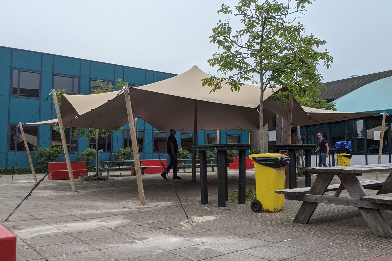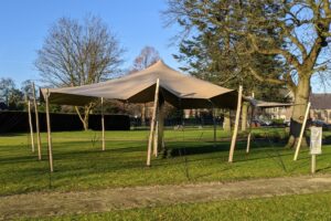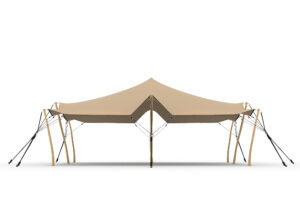 De stretchtent wordt compleet geleverd inclusief alle benodigdheden om deze op te zetten.