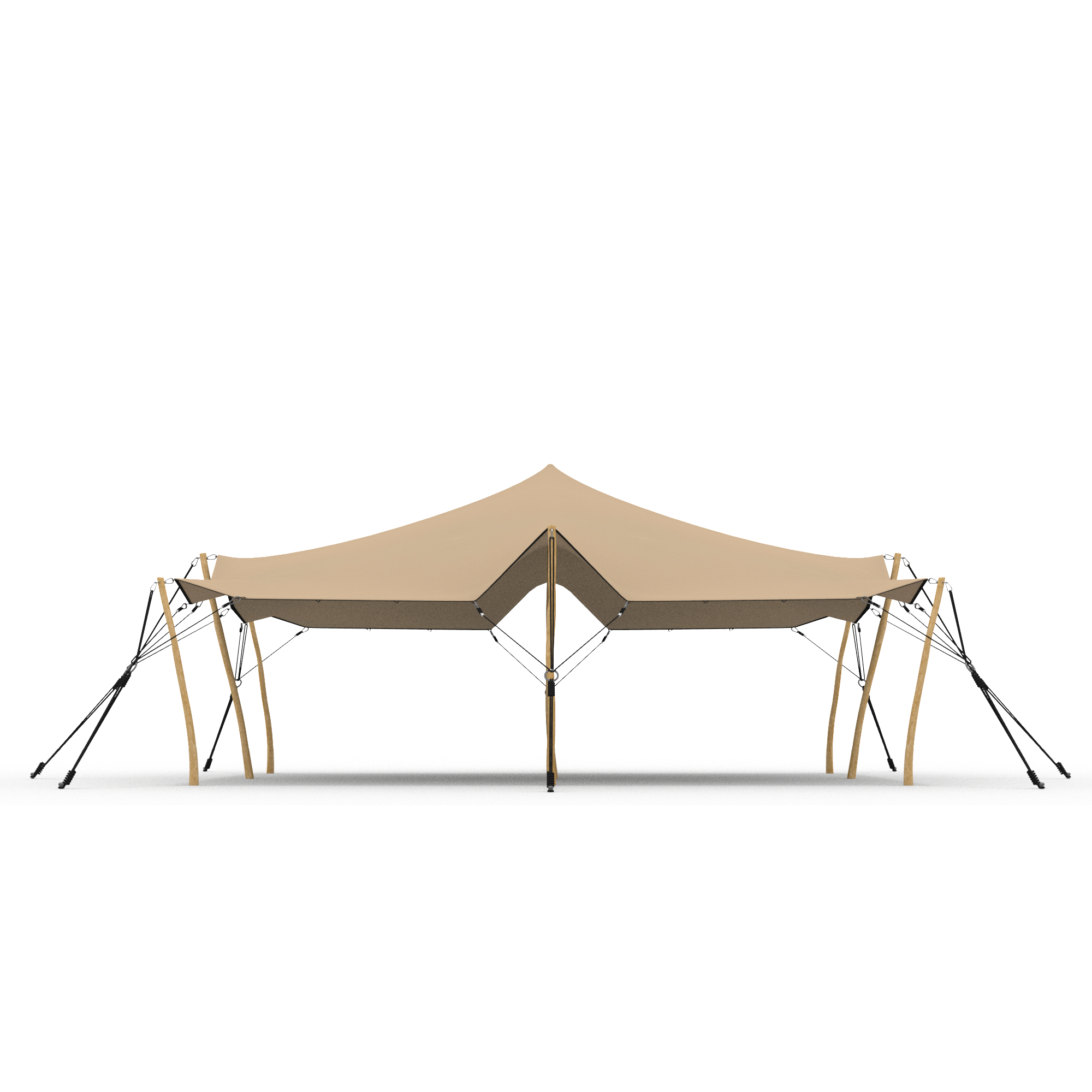 De geschiedenis van de voorloper van de stretchtenten dateert al van eeuwen geleden uit de Afrikaanse woestijnen. Het originele design was bedoeld om de extreme omstandigheden in deze woestijnen te kunnen doorstaan. Deze bedoeïenentent is de inspiratiebron geweest van de huidige stretchtenten, met zandkleurige modulaire zeilen en robuuste houten palen.