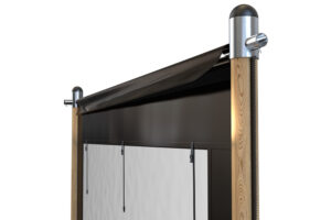 Het zeil is te openen door de ritsen omhoog te ritsen en het deel ertussen op te rollen. De opgerolde zeilen kunnen bovenaan worden vastgezet met de gespen. Zo kun je altijd een opening creëren in de tent. Ook is het mogelijk om een zeil weg te laten natuurlijk.