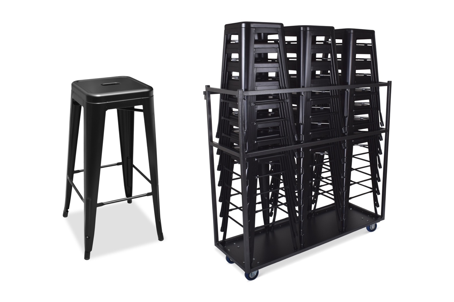 Supercombi – 24 stijlvolle barkrukken met transporttrolley