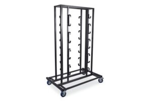 Op deze transportkar passen alle soorten afzetpalen. Ideaal wanneer je er veel tegelijk wilt vervoeren. Totaal passen er 16 afzetpalen op de transport trolley. Je kunt de losse koorden eenvoudig aan de horizontale middenbuis hangen zodat deze ook vervoerd kunnen worden. De dragers voor de afzetpalen zijn ingelegd met zachte stof zodat ze niet beschadigen.