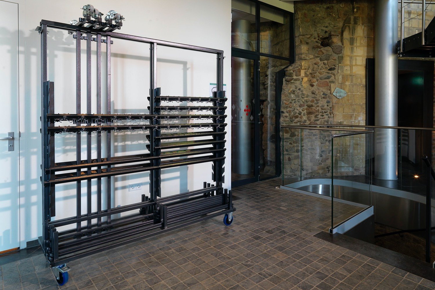 Ook de andere kapstokken kunnen op deze trolley vervoerd worden.