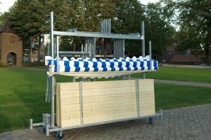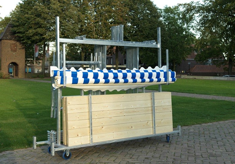 De gegalvaniseerde transportkar voor marktkramen is speciaal ontwikkeld voor onze demontabele marktkramen. Dankzij het doordachte ontwerp kunnen alle onderdelen eenvoudig en veilig in de trolley worden opgehangen. Elk onderdeel heeft een eigen plek, wat beschadigingen voorkomt en zorgt voor efficiënt transport.
