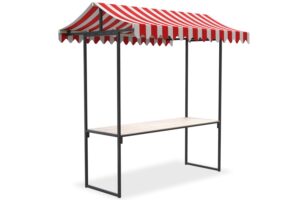 De trolley is vervaardigd uit gegalvaniseerd staal, wat garant staat voor een stevig en duurzaam systeem. De trolley wordt volledig gemonteerd geleverd en biedt plaats aan maximaal 6 complete professionele marktkramen.