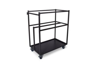 De trolley is speciaal ontwikkeld voor de Statafels Madeira. Het heeft een afscheidingsframe waardoor de tafels niet tegen elkaar aan vallen en mooi afgezonderd zijn. Het mooie is dat de trolley door de smalle afmeting nog door een deur past. Er passen 6 statafels Madeira op deze transportkar.
