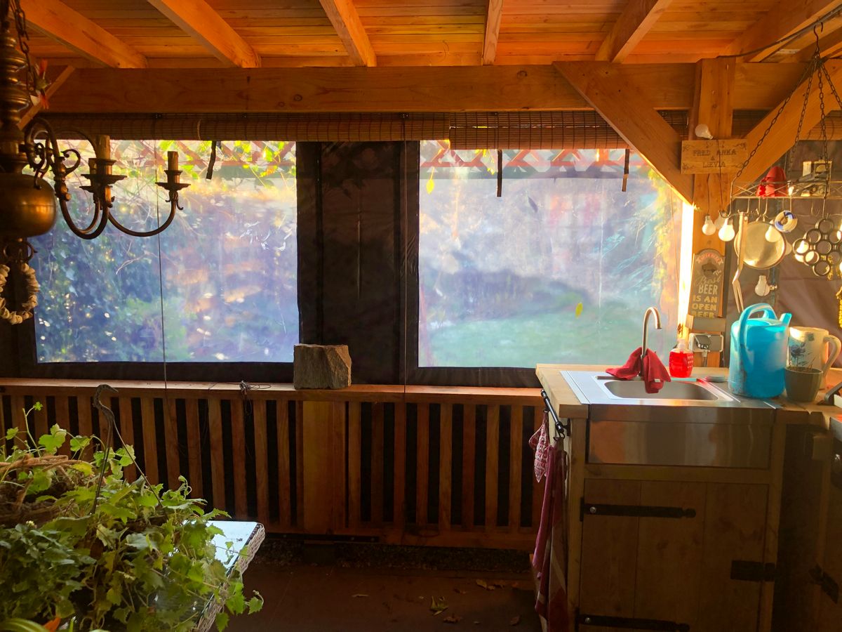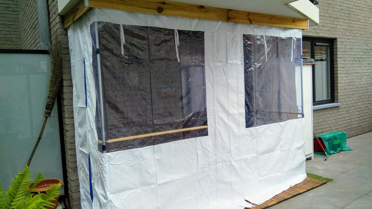 Rondom in het zeil zitten oogringen waarmee je het zeil kunt bevestigen aan de overkapping door middel van bijvoorbeeld schroeven met een plaatje ervoor of elastieken. Het zeil kan ook heel gemakkelijk met zelfklevend klittenband worden bevestigd aan bijvoorbeeld de houten staanders en liggers van een overkapping.