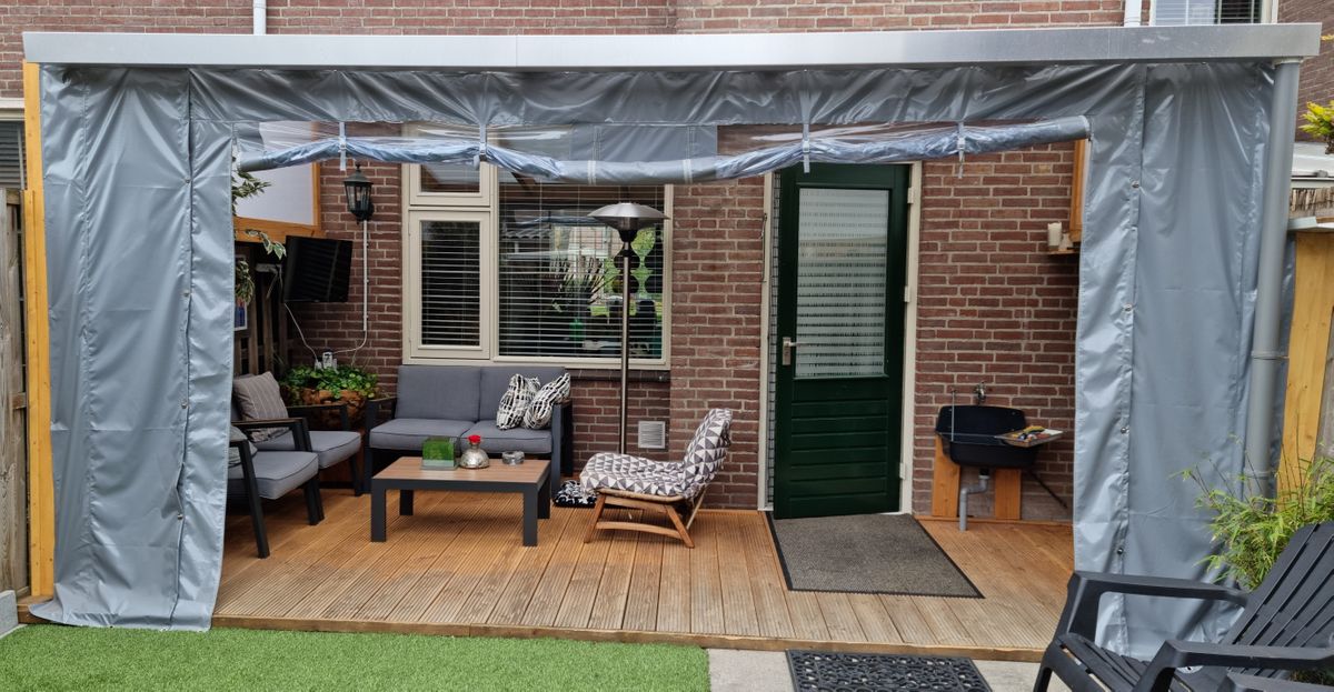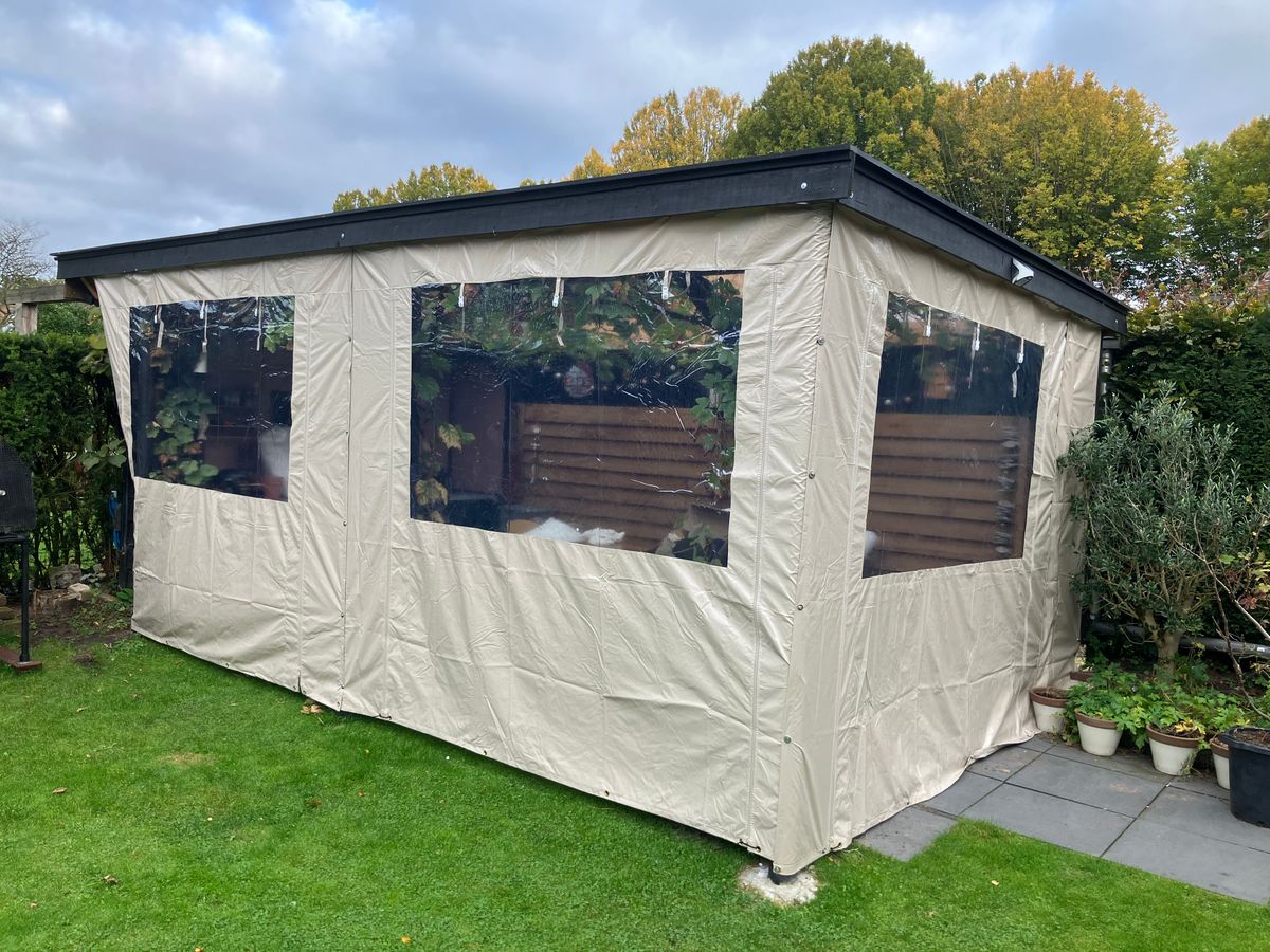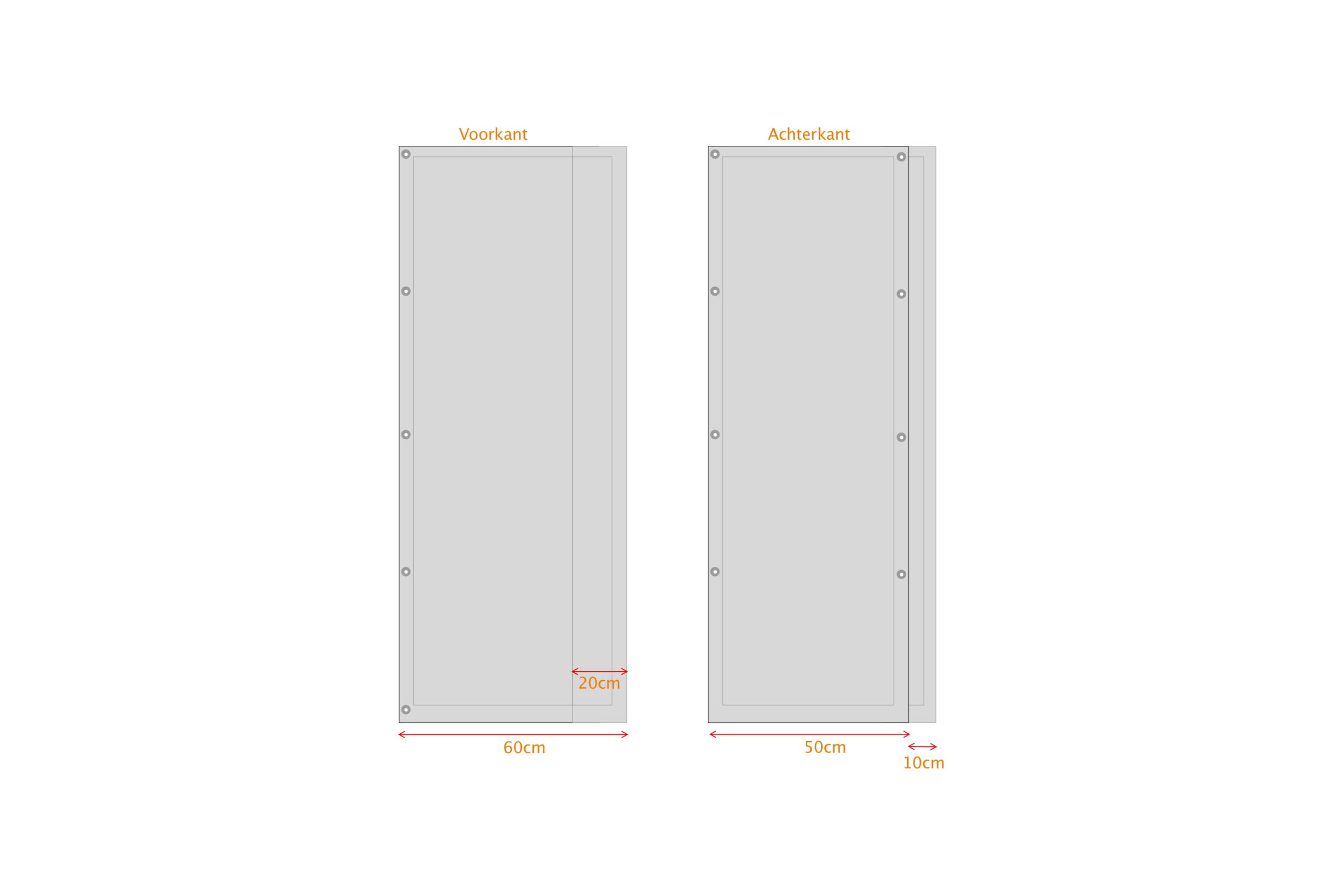 Met dit stuk zeil kun je de overkapping zijwanden een stukje breder maken. Het stuk is 50cm breed en 250cm hoog en beschikt rondom over oogringen. Aan 1 kant zit een stukje overlapping van 10cm waarmee je deze vast kunt zetten aan een ander zeil. Hiermee is de naad mooi afgedicht. Je zou deze kunnen lijmen of vastzetten met zelfklevend klittenband. Dit zeil is gemaakt van 100% gelast PVC. Doordat we met vast afmetingen werken zijn onze overkapping zeilen een erg goedkope oplossing ten opzichte van de maatwerk zeilen en doet zeker niet onder in kwaliteit.