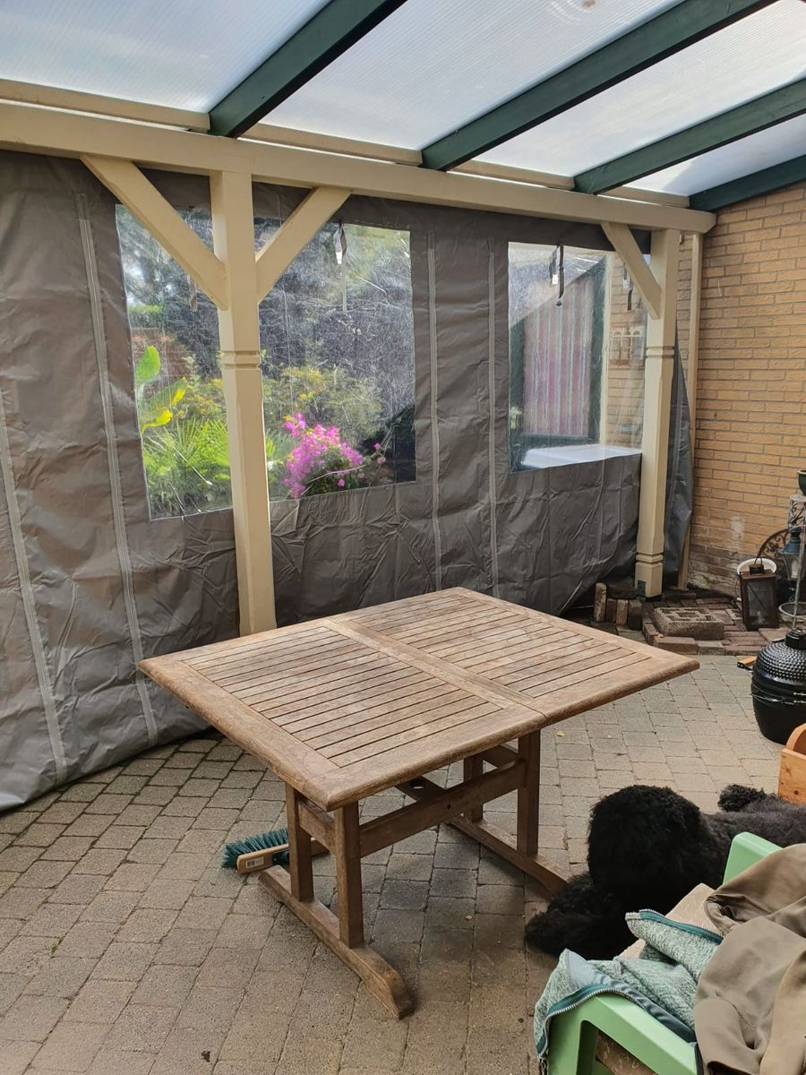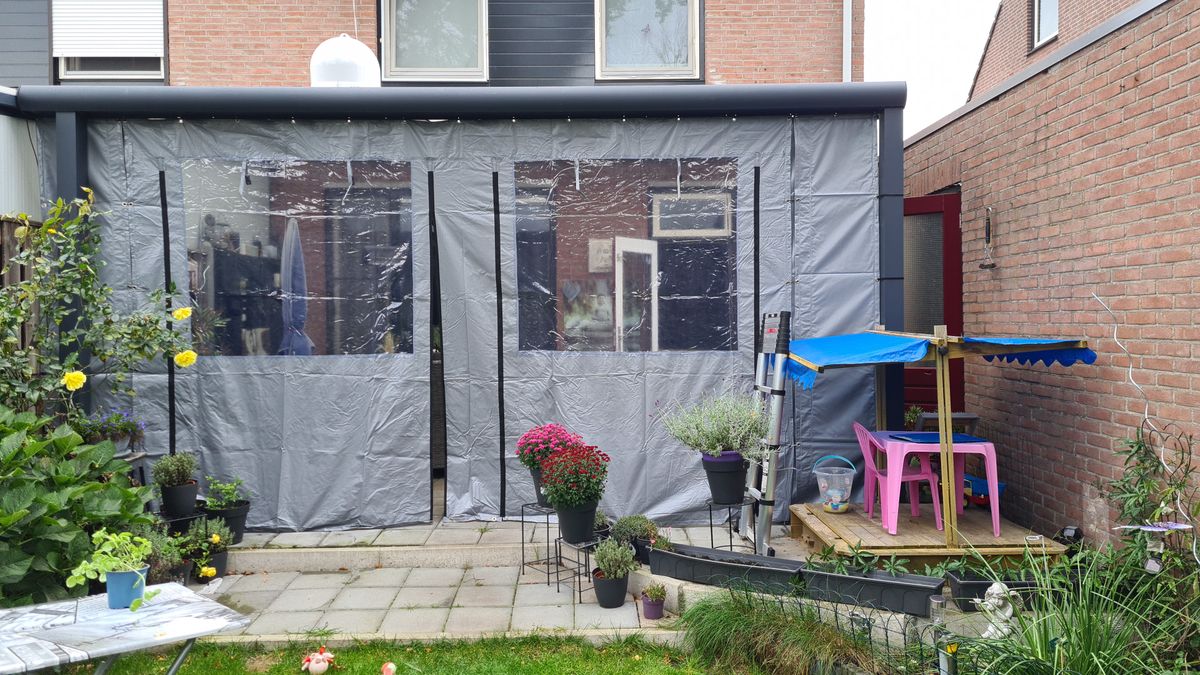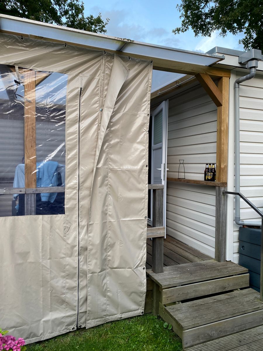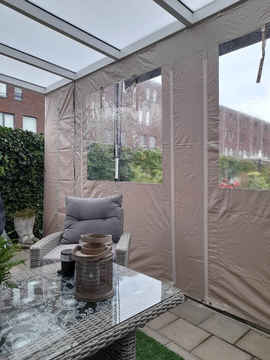 Met dit stuk zeil kun je de overkapping zijwanden een stukje breder maken. Het stuk is 50cm breed en 250cm hoog en beschikt rondom over oogringen. Aan 1 kant zit een stukje overlapping van 10cm waarmee je deze vast kunt zetten aan een ander zeil. Hiermee is de naad mooi afgedicht. Je zou deze kunnen lijmen of vastzetten met zelfklevend klittenband. Dit zeil is gemaakt van 100% gelast PVC. Doordat we met vast afmetingen werken zijn onze overkapping zeilen een erg goedkope oplossing ten opzichte van de maatwerk zeilen en doet zeker niet onder in kwaliteit.
