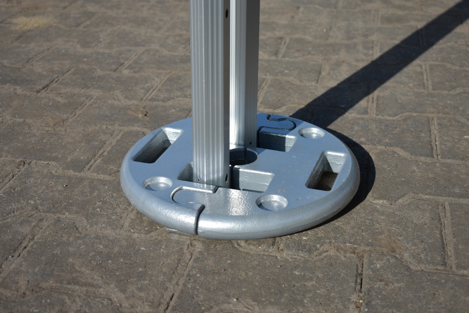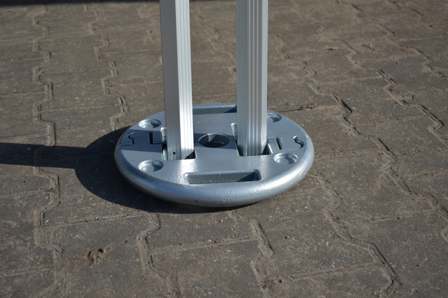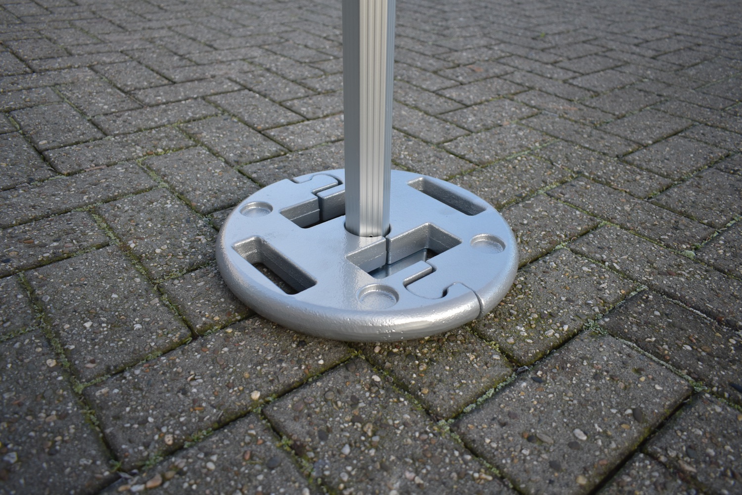 De delen passen perfect in elkaar en sluiten zo mooi om de staanders van de easy up partytenten.