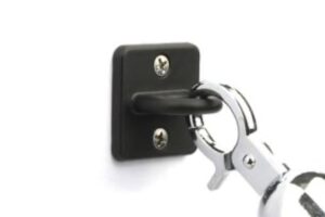 Wil je met je afzetpalen vanaf de muur beginnen dan is de wandhaak daarvoor ideaal. Je klikt eenvoudig het koord eraan en hangt het koord aan eerstvolgende paal. De wandhaak is netjes afgewerkt heeft dezelfde kleur als de matzwarte palen en sluitingen van de koorden.