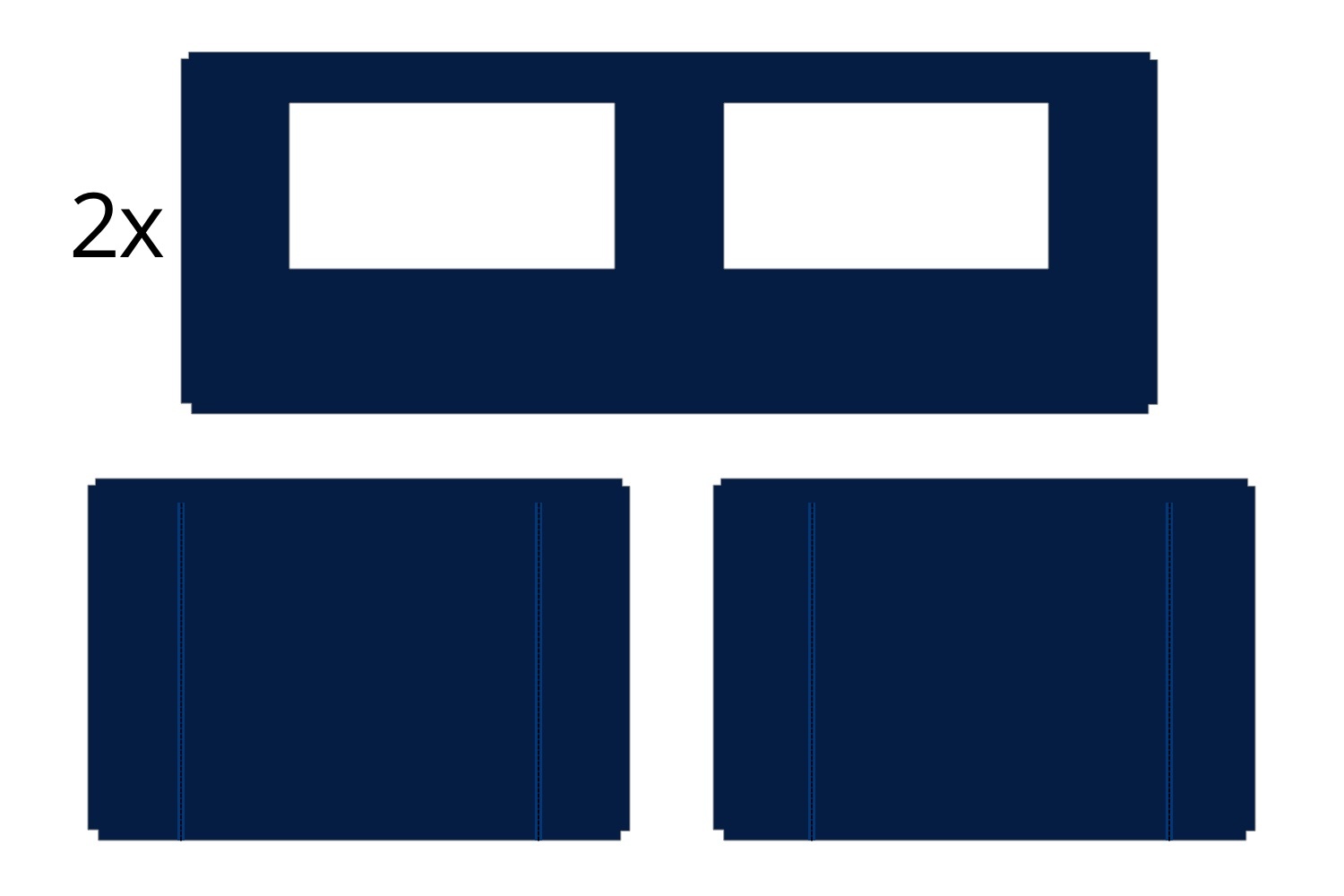 De zijwandenset bestaat uit totaal 4 of 6 zeilen. Je kunt hierbij kiezen uit twee samengestelde zijwandensets. Bij de variant met 6 zeilen kun je optioneel een halve lange wand sluiten. Bij de variant met 4 zeilen is de 6 meter wand uit 1 geheel.