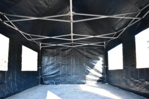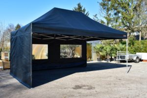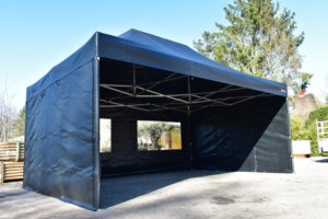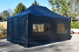Met de zijwandenset voor de Easy Up 4×6 Professional kun je de partytent volledig rondom afsluiten. Elk zeil is ook enkel te hangen, dus niet alle zijwanden hoeven tegelijk geplaatst te worden. Op de hoeken gaan deze zijwanden volledig om de paal wat een enorme verbetering is in stevige bevestiging van de zeilen, levensduur, winddichtheid en uitstraling. Bij veel aanbieders zitten er ‘slechts’ enkele stukjes klittenband op de uiteinden van de zeilen om ze mee aan de staanders te bevestigen.